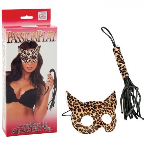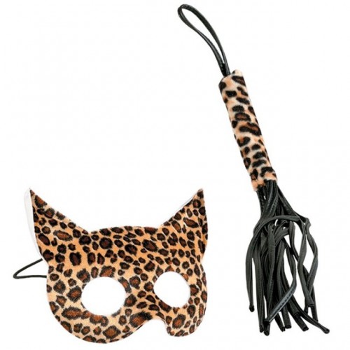 Эротический набор из маски и плетки леопардовой расцветки.