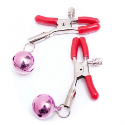Зажимы для сосков с бубенчиками розового цвета. Сделайте свои соски дерзкими от возбуждения! Металлические скрепки покрыты резиновыми лайнерами для безопасного использования. Мощность давления регулируется.