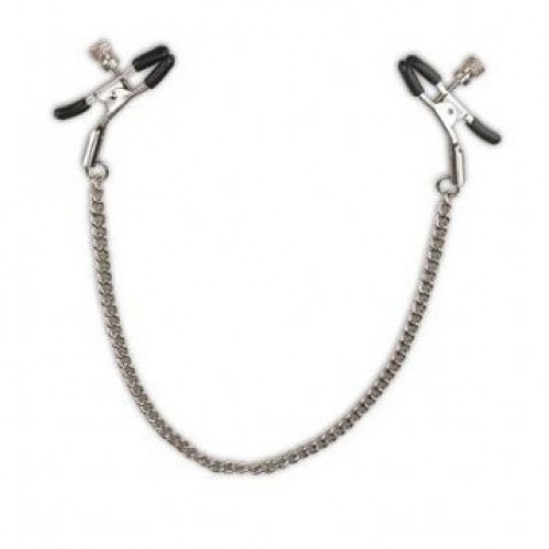 Клипсы на соски, соединенные цепочкой из серебристого металла, с возможностью регулировать силу зажима. Зажимы покрыты резиновыми прокладочками, чтобы не повредить нежную кожу сосков.