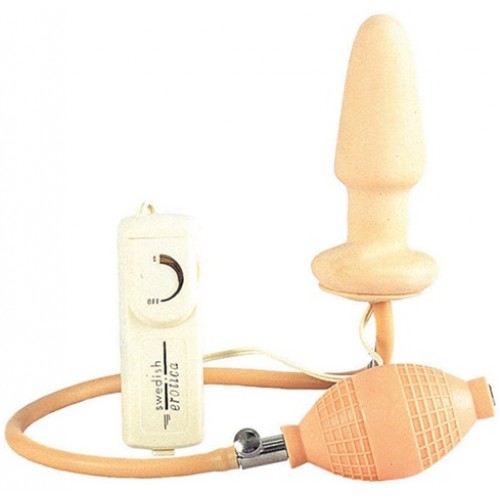 Надувная пробка для анальной стимуляции телесного цвета из латекса с вибрацией.