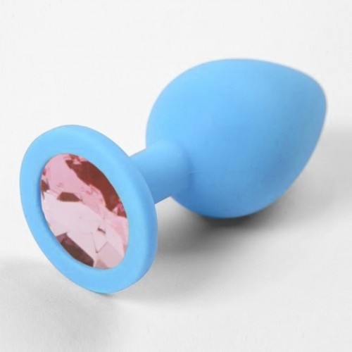 Голубая силиконовая пробка с нежно-розовым стразом