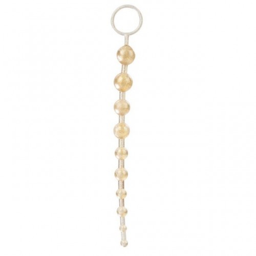 Золотые анальные бусы с максимальным диаметром бусинок до 2,5 см на гибком стержне помогут попробовать новое вместе с партнером!