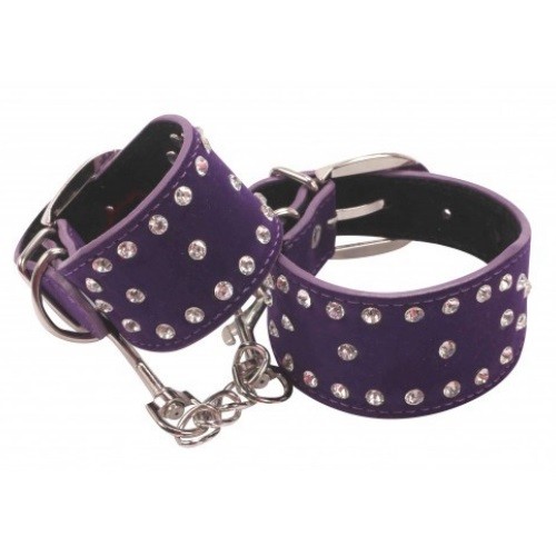 Манжеты соединены между собой прочным карабином и цепочкой. Изделие декорировано металлическими пряжками, что придает особый дизайн наручникам.