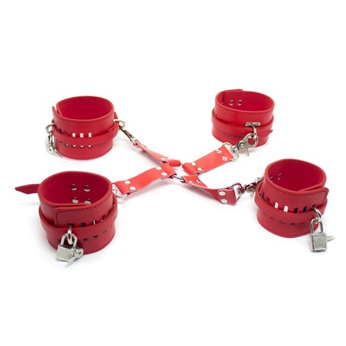 Бондажные наручники и поножи красные