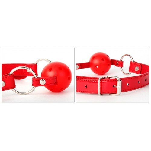 Дышащий кляп надежно фиксируется ремешком на затылке. Размер регулируется.