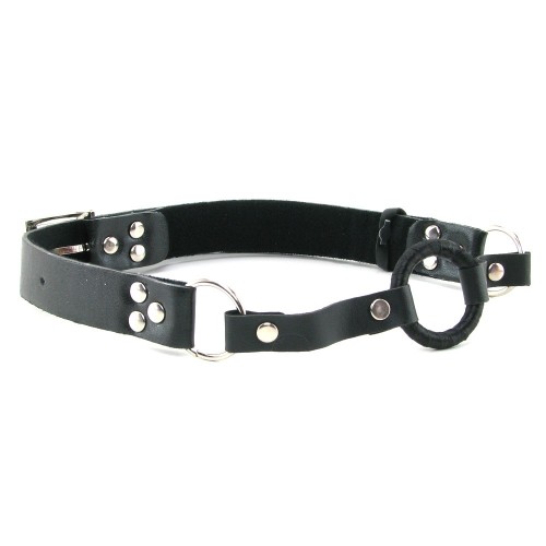 Кольцо держится на кожаных ремешках, которые крепятся на затылке, фиксируя кляп. Изнутри ремешки прошиты мягким материалом, что позволяет не натирать кожу при длительном использовании. Погружается кольцо за зубки.