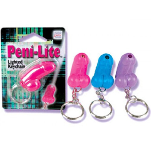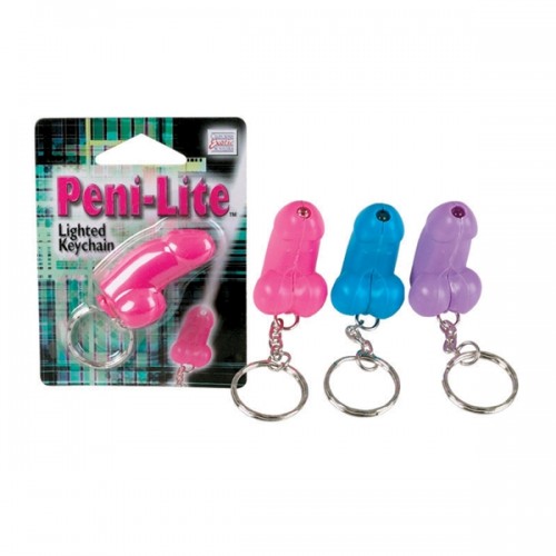 Брелок фаллос-фонарик. При нажатии на кнопку светится. Имеется кольцо для крепления к ключам.