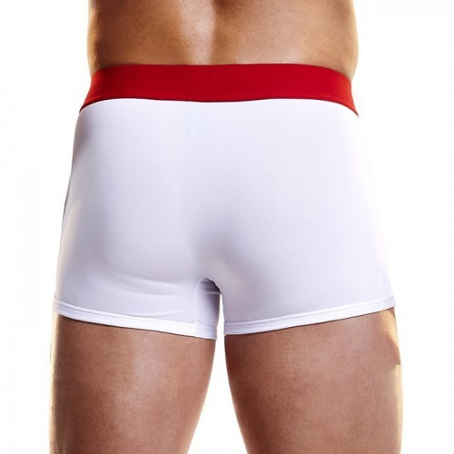 Белые обтягивающие боксеры Hustler из мягкой и удобной микрофибры на широкой красной резинке. Трусы с классической посадкой поэтому отлично подходят для повседневной носки.