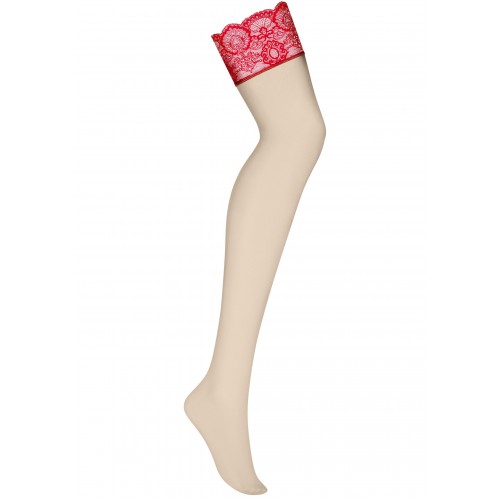 Бежевые чулки с красивым красным кружевом L/XL