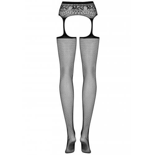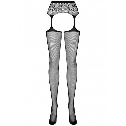 Чулки выполнены из прозрачной, мелкой сеточки черного цвета. Имеют удобную,широкую резинку на талии, которая гарантирует идеальную поддержку чулок на ножках.