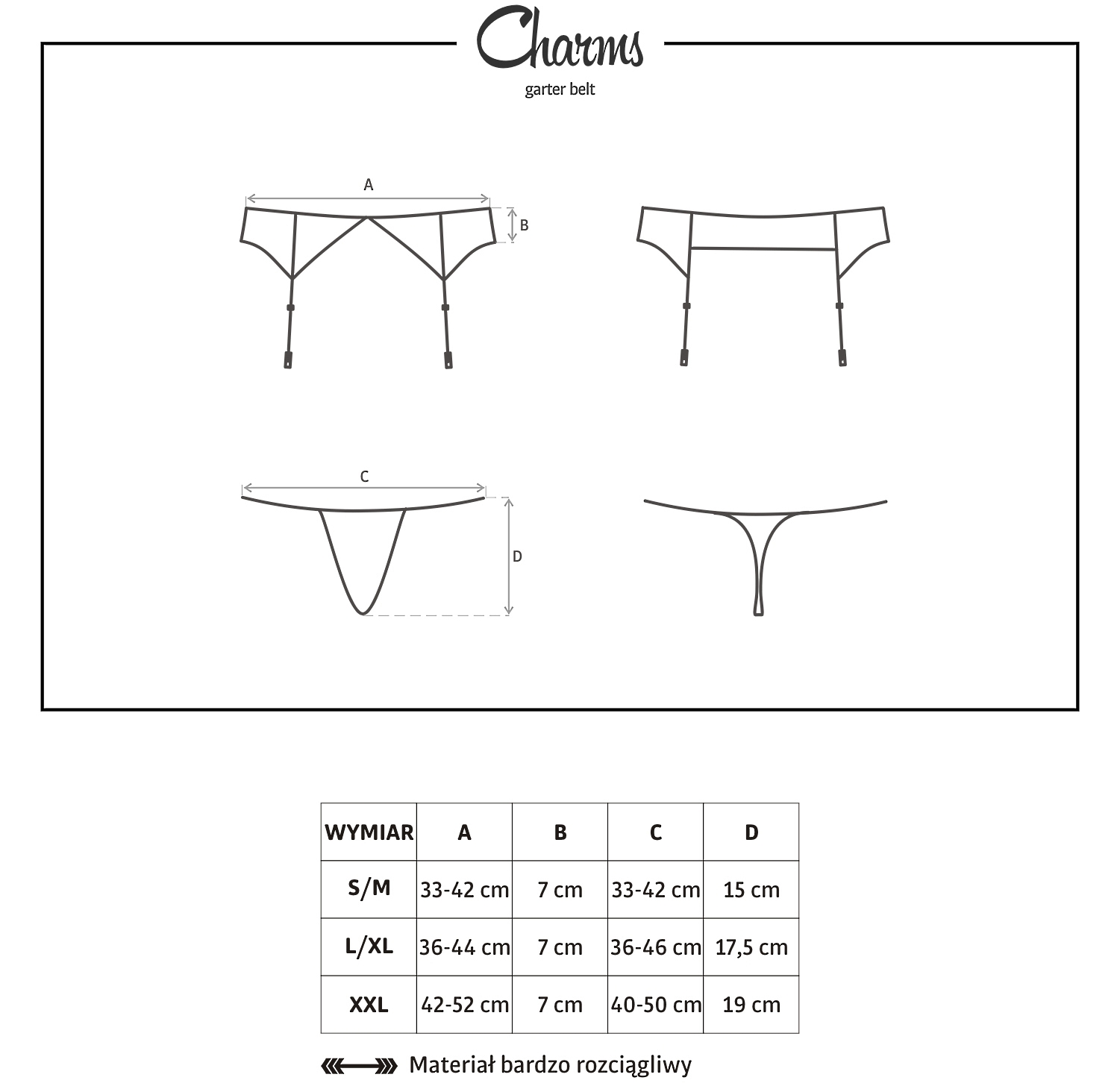 В Charms Вам будет комфортно. Белье украсит тело. А с помощью пояса можно удобно зафиксировать на ножках чулки. Пояс будет хорошо сочетаться с другим эротическим бельем.