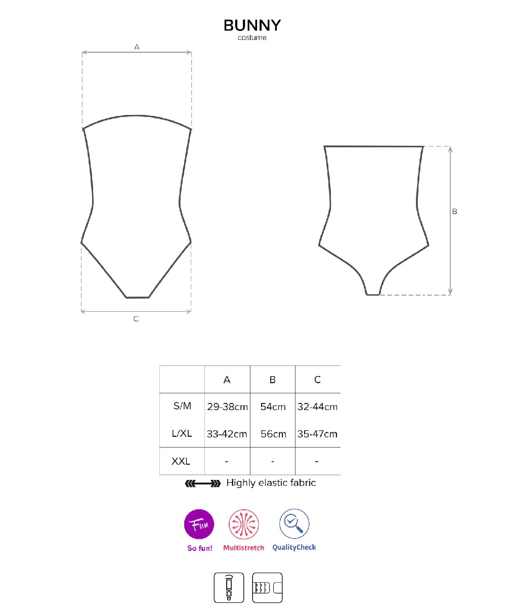 Детали: маска с кроличьими ушками, эффектное колье с бантом, классический боди черного цвета, визуально делающее вас стройнее, удобные съемные подвязки с регулируемыми бретелями, красивые бантики, украшающие подвязки, сексуальные чулки из нежной сетки, красивая эластичная ткань Multistretch.