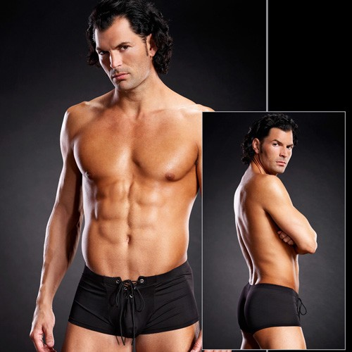 Удобные мужские трусы-боксеры черного цвета со шнуровкой спереди.