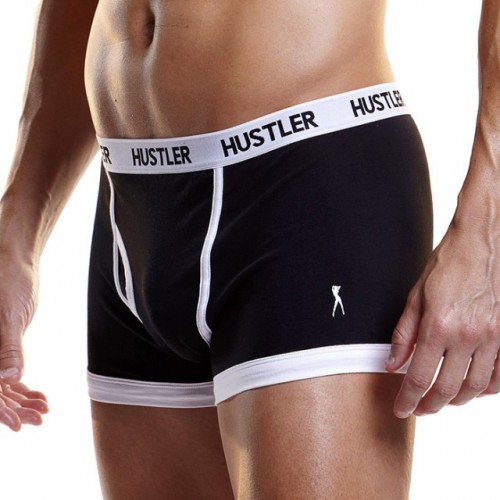 Черные обтягивающие боксеры Hustler на узкой белой резинке.