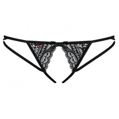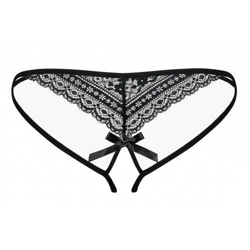 Детали: мягкая, эластичная резинка, открытая промежность - идеальное решение для смелых дам, нежная и эластичная ткань, невероятно очаровательное цветочное кружево, черный атласный бантик