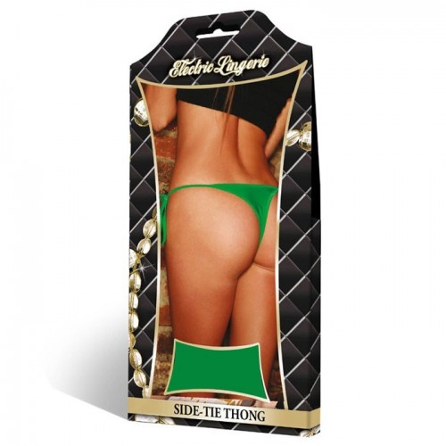 Неоновые зеленые стринги на боковых завязках