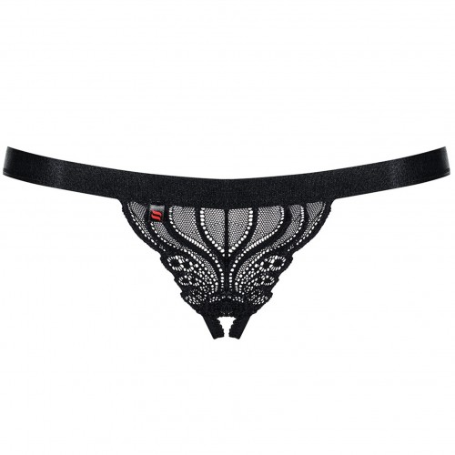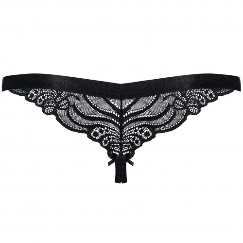 Пикантные черные трусики-стринги с открытой промежностью S/M