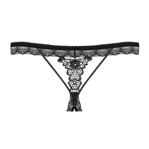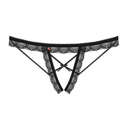 Детали: сексуальные трусики с пикантной открытой промежностью, уникальное сочетание полос и кружева, бантик и миниатюрная безделушка спереди - максимум женственности, кружево с красивым рисунком на ягодицах, нежная эластичная ткань.