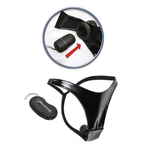 Спрятанное внутри этих сексуальных G-string - мощное водонепроницаемое яичко, которое имеет 10 функций вибрации, оно управляется с помощью пульта дистанционного управления с эффективнстью до 25 метров.