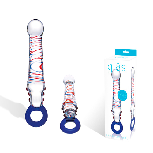 Толстый большой жезл из прозрачного стекла ручной работы, тело фаллоса покрыто цветными - красными и синими линями, у основания 6 массажных точек. Для удобства использования фаллос с кольцом в основании. Длина гигиеничной игрушки без кольца 19,5 см, максимальный диаметр 4 см. Производитель: Glas, США Материал: Стекло Цвет: Прозрачный Упаковка: Коробка