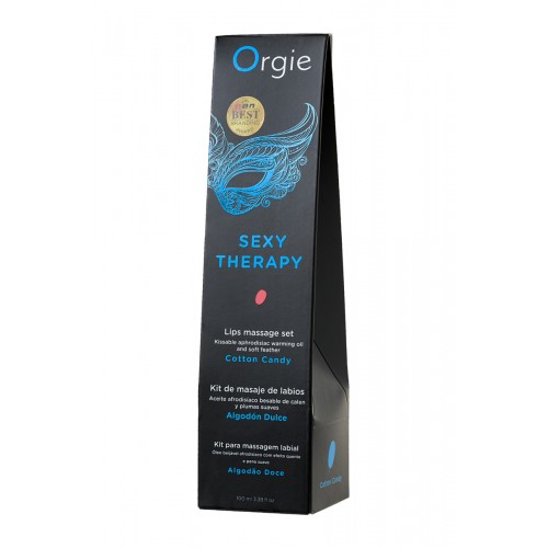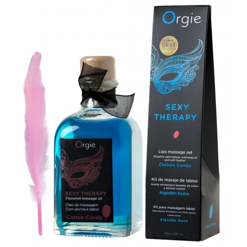 Комплект для сладких игр Orgie Lips Massage со вкусом сахарной ваты(сладкое массажное масло и перо), 100 мл