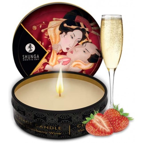 Массажная аромасвеча Shunga Romance Sparkling Strawberry Wine c ароматом клубники и шампанского 30 мл