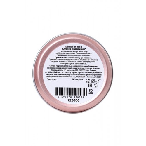 Массажная свеча ''Романтический массаж'', в составе которой только натуральные масла, глубоко питает и увлажняет кожу.
