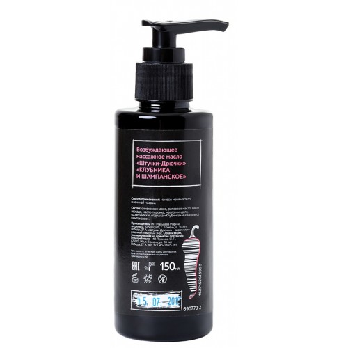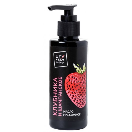 Массажное масло «Клубника и шампанское» подходит для самомассажа или для уютного вечера вдвоем.
