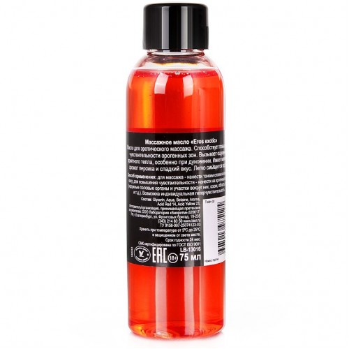 Нежные ласкающие прикосновения рук в сочетании с маслом Eros Tasty помогут расслабиться и ощутить успокаивающее тепло, особенно при дуновении. Использование масла во время массажа повысит чувствительность, обеспечит продолжительное скольжение.