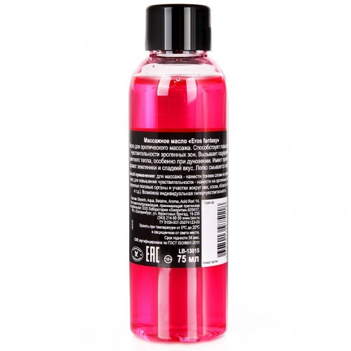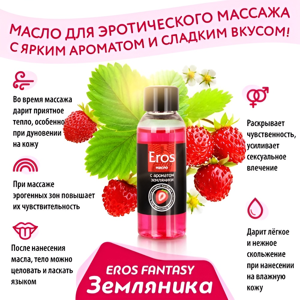 Массажное масло "Eros Fantasy" - идеальное средство для эротического массажа с приятным ароматом земляники, которое окутает Вас облаком сладости и неги!
