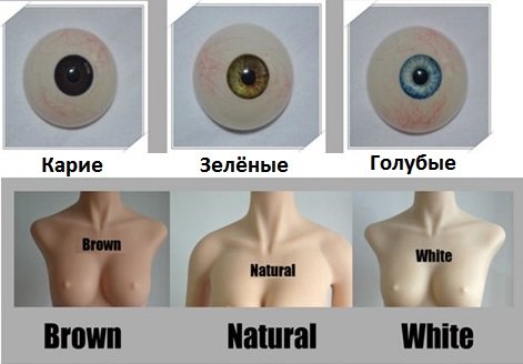 Возможность выбора: лица, цвета глаз, парика, волосяного покрова в лобковой области, цвета ногтей
