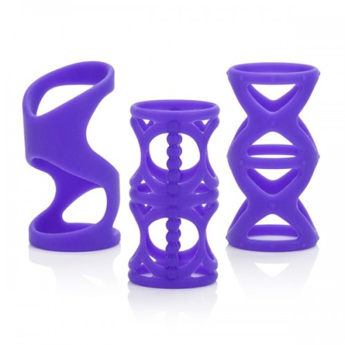 Комплект насадок для пениса из фиолетового силикона с разным рельефом. Насадка одевается на эрегированный пенис и своим рельефом просто сводит с ума обоих партнеров, добавляя новые ощущения при привычном сексе.