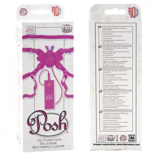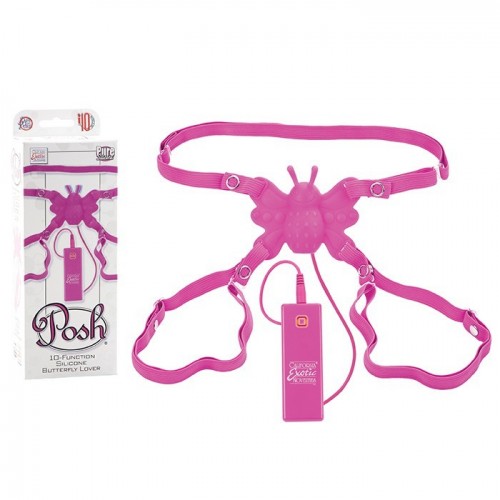 Силиконовая розовая бабочка-стимулятор на ремешках с 10 функциями Butterfly Lover