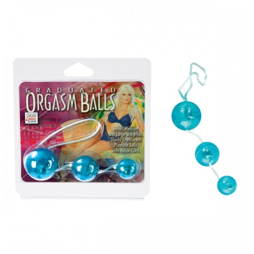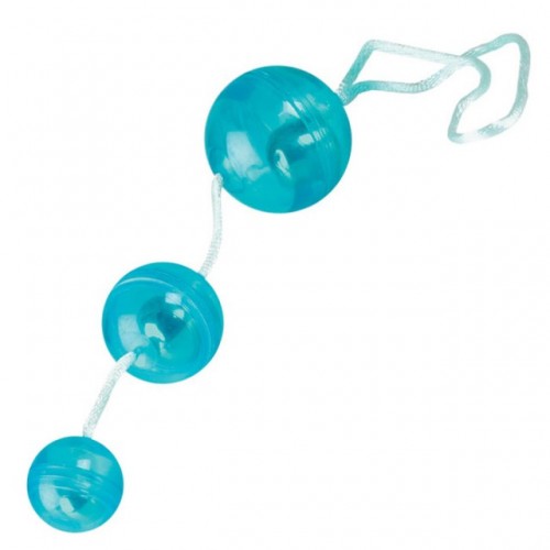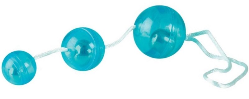 Три вагинальных шарика голубого цвета со смещенным центром тяжести на веревочке.
