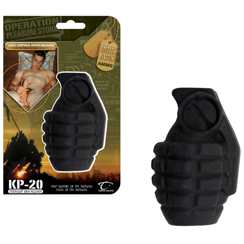 Мужской мастурбатор в виде черной гранаты из мягчайшего киберскина с рельефными ребрами внутри тоннеля.