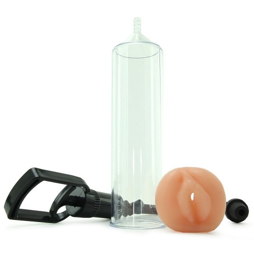 Вакуумная помпа для мужчин состоит из прозрачной колбы со вставкой в виде вагины телесного цвета, выполненной из качественного мягкого материала, шланга и механизма для откачки воздуха. Регулярные тренировки способствуют увеличению члена, также он станет твердым, как камень, что придаст пикантности сексуальным играм.