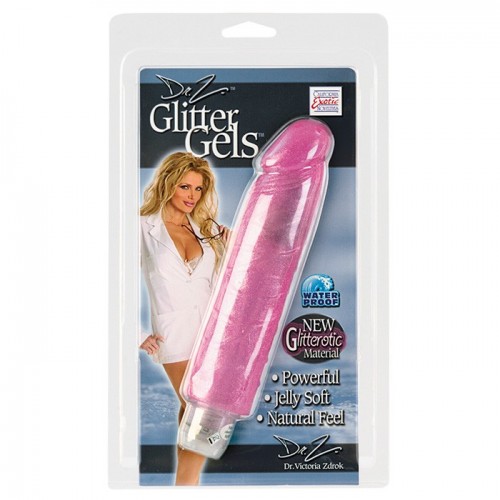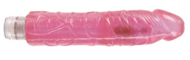 Водонепроницаемый вибратор из розового PVC с блестками.