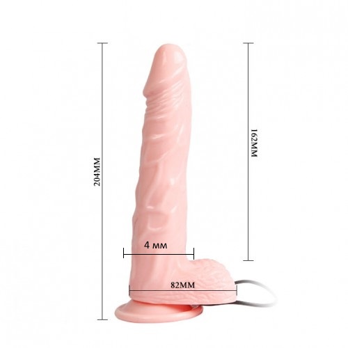 Фаллоимитатор имеет ярко выраженную головку розового оттенка и плотную небольшую мошонку. По всему стволу вибратора извиваются набухшие от возбуждения вены. Он просто создан для Вашего удовольствия!