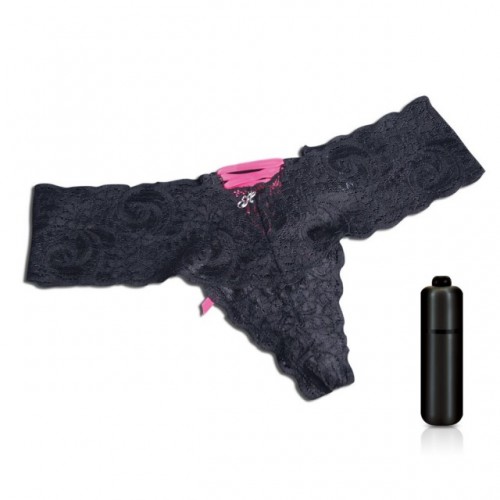 Ажурные черные трусики-тонг с вибро-пулей ML
