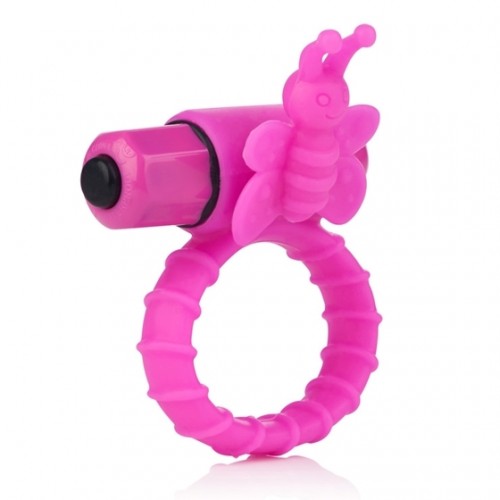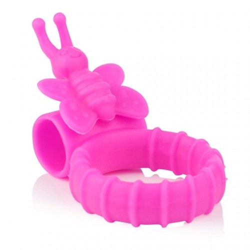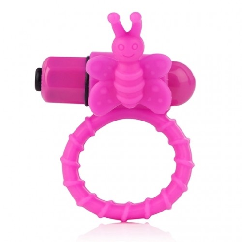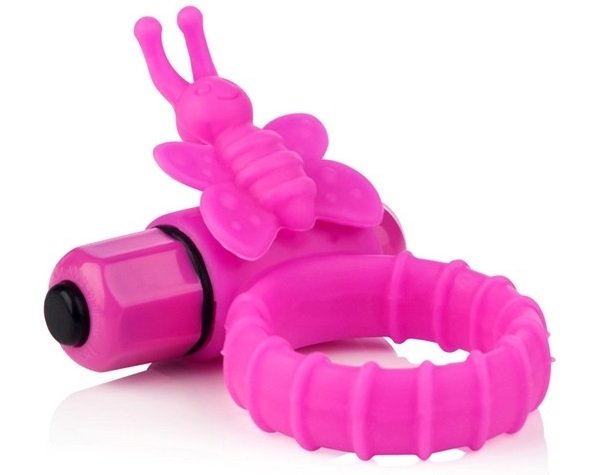 Эрекционное кольцо из силикона со съемным вибромеханизмом и небольшим стимулятором клитора в виде бабочки.